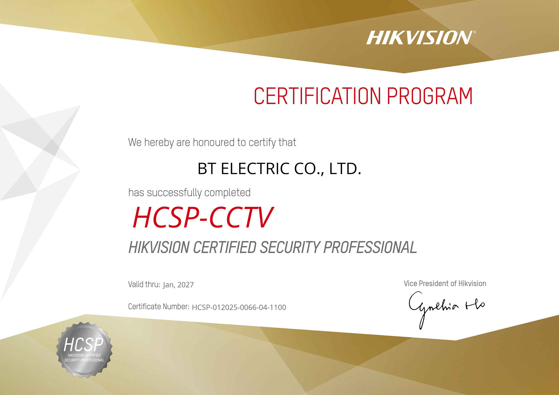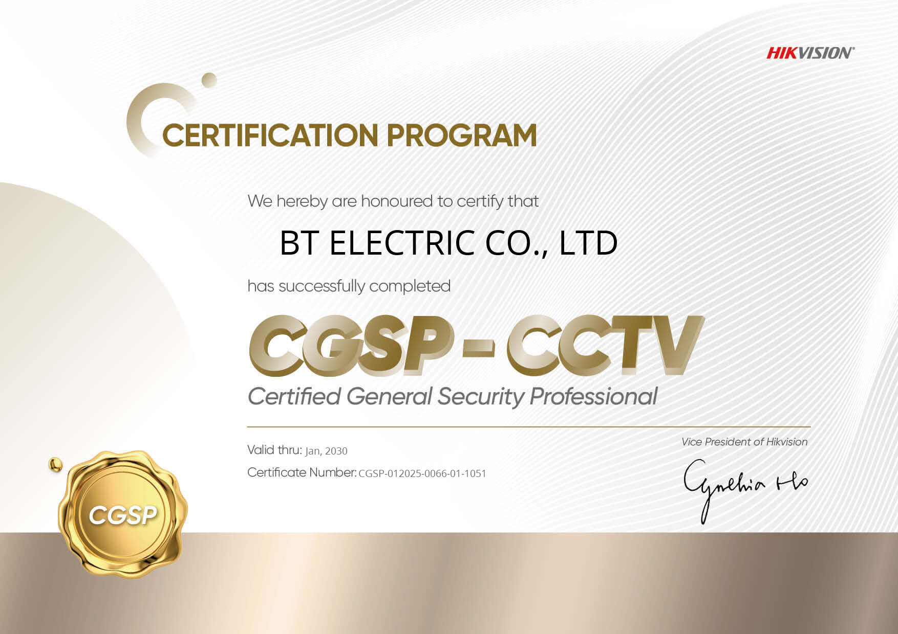เราได้รับใบรับรองมาตรฐานระดับสากล HCSP-CCTV และ CGSP-CCTV จาก HIKVISION เพื่อการบริการที่เชื่อถือได้!